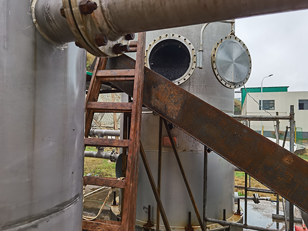 這是客戶的項(xiàng)目現(xiàn)場,共有2個脫硫塔,每個脫硫塔裝20噸,共40噸,工作硫容大于25%。